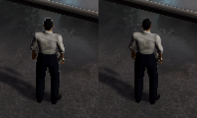 Notice the bright white/gray pixels around the borders of the left character.